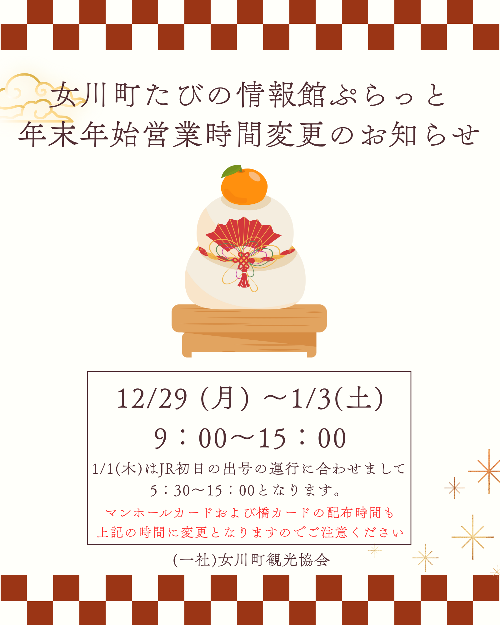 女川町たびの情報館ぷらっと 年末年始の営業時間変更のお知らせ