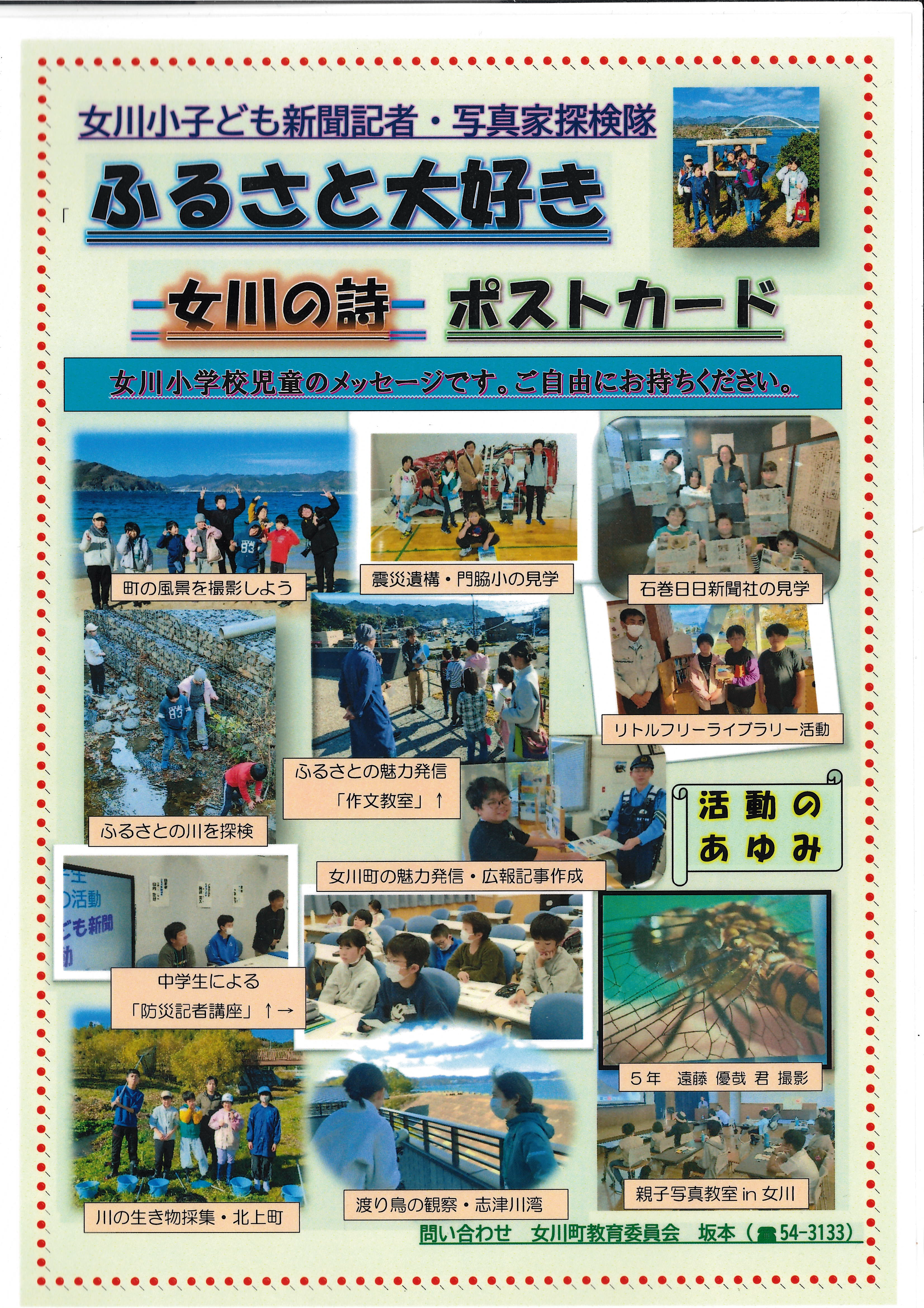 女川小子ども新聞記者・写真探検隊の子どもたちが制作した「女川のポストカード」を、旅の情報館ぷらっとにて無料配布中です。 子どもたちならではの視点で切り取られた女川の風景は、どれも魅力にあふれています。大人が見慣れた景色も…