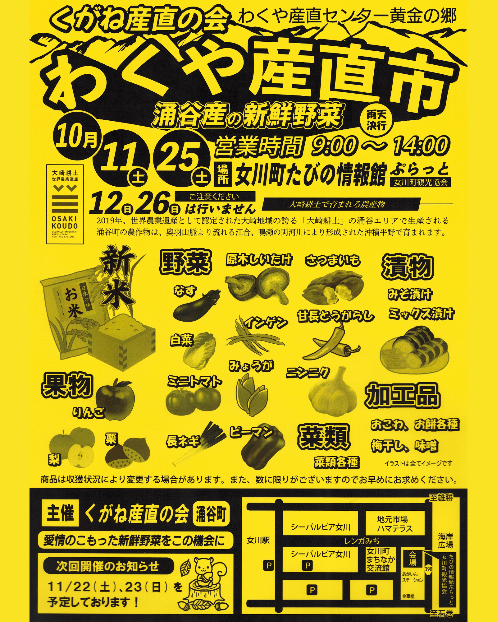 10/11(土)・25(土)は『わくや産直市』です!
