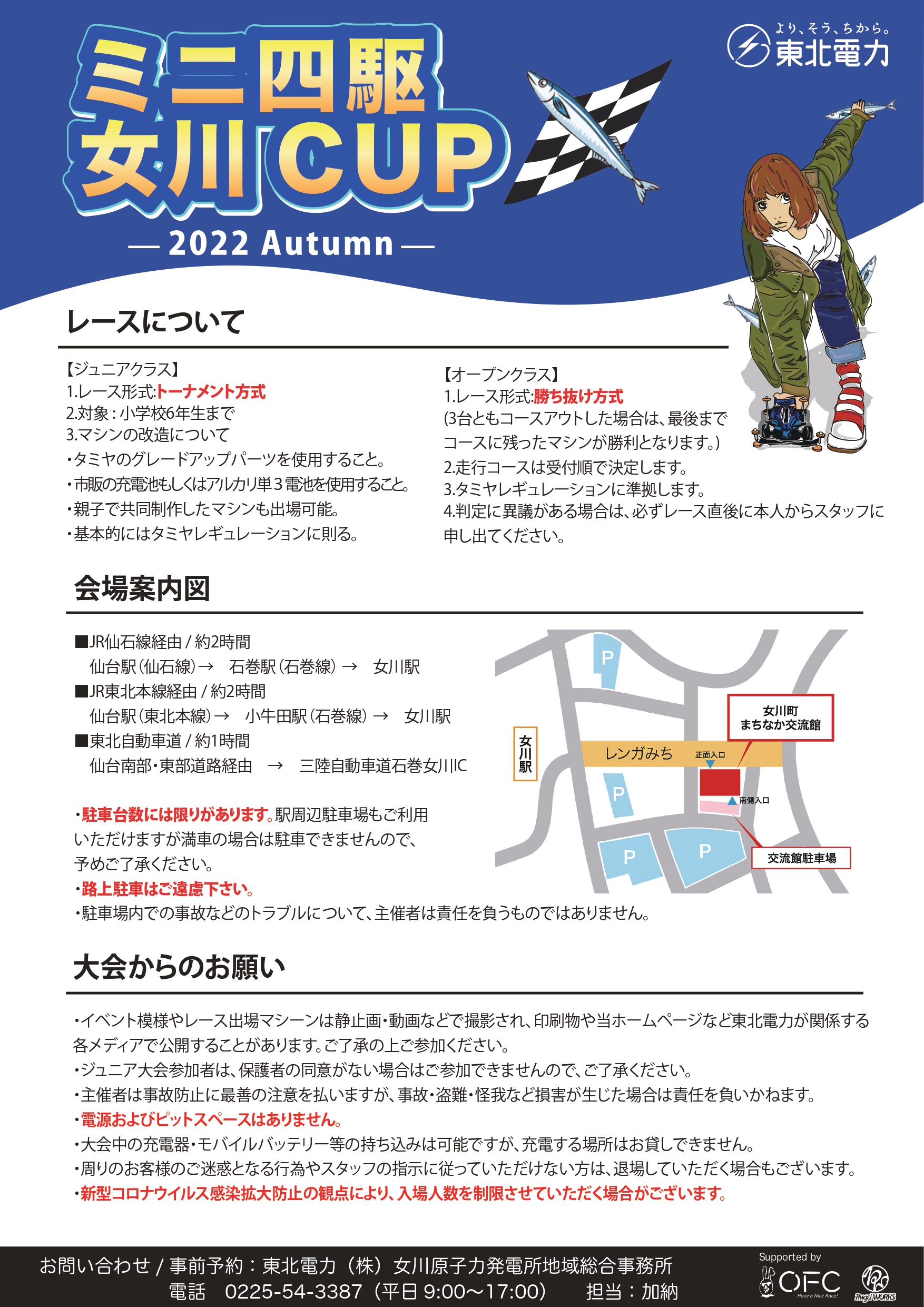 ・イベント模様やレース出場マシーンは静止画・動画などで撮影され、印刷物や当ホームページなど東北電力が関係する各メディアで公開することがあります。ご了承の上ご参加ください。