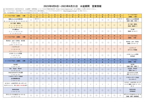 ※各店舗の営業時間が急遽変更になる可能性があります。詳しい問い合わせについては各店舗へお願いいたします。