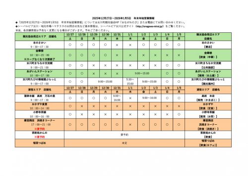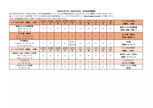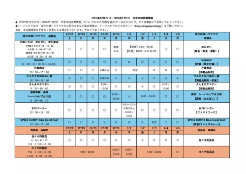 令和7年度 女川町内年末年始期間中の営業予定について