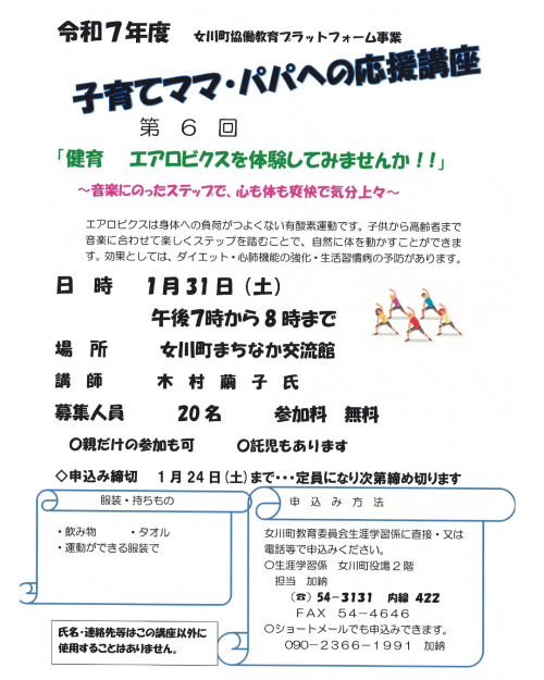 1月31日(土)、第6回「子育てママ・パパ応援講座」が開催されます。