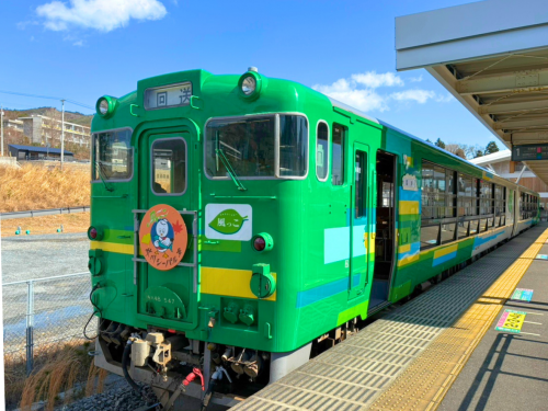 おながわブログ イベント情報 街なかレポート おながわ日記 風っこ女川シーパル号が女川駅にやって来ました! おながわ日記 ブログ/2026年3月7日 JR春の臨時列車「風っこ女川シーパル号」が女川駅にやって来ました! 今日は風こそ強いものの寒さもそこまで厳しくなく青空が広がりました。 青空と緑色の車両のコントラストが映えますね。 1月に来たストーブ号と車両デザインは同じに見えますが… 車両の前後には町の観光PRキャラクター・シーパルちゃんがいます! 名前だけでなく車両の一部にもシーパルちゃん要素が!嬉しい限りです。 「風っこ女川シーパル号」は明日3/8も運行します。詳しくはJR東日本の公式ホームページなどをご確認ください。 ←女川100TRAILS2026がスタートしました! こちらの記事もどうぞ復幸祭が明けて、穏やかな女川町です!天皇陛下と桜とオナガワニ サクラ サク!!震災から5年目