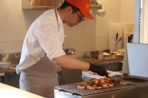 食べる直前に目の前で炭火焼きされた女川銀鮭、皮はパリッと身はふっくら。