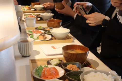 宮城県内の厳選した素材を使用しているお米、銀鮭のあら汁、付け合わせはもどれも絶品で、