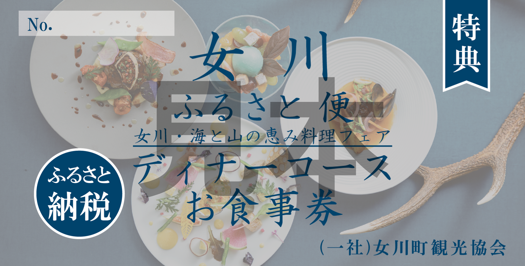 - 本クーポンは当該店舗専用のものであり、ふるさと納税の仕組み上、女川町の食材を中心としたコース料理等にご利用が限定されます。また、これらのコースやフェアは期間限定で開催される場合があります。